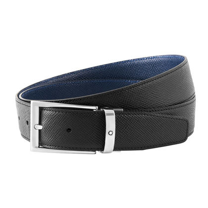 Двусторонний ремень из кожи черного и синего цвета 35 мм от магазина премиальных ручек Premium Pens в Москве.